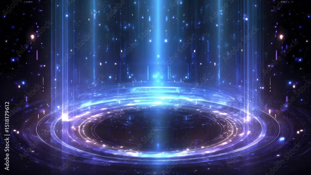 The watermark will not be included on Wall mural.: Vibrant cosmic portal with luminous beams and sparkling particles creating a mesmerizing visual effe