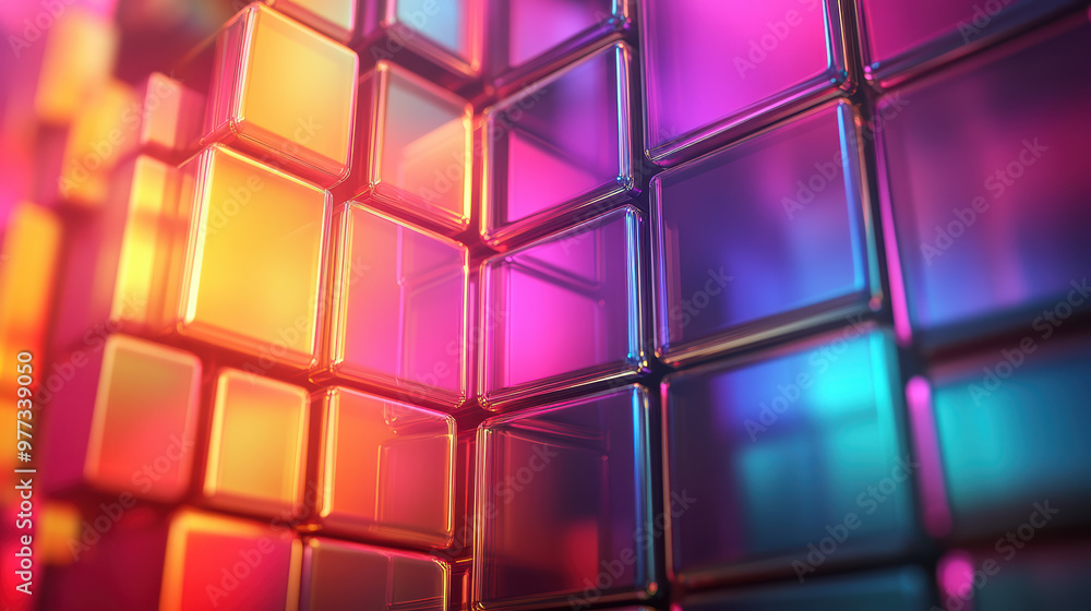 The watermark will not be included on Wall mural.: Vibrant cubes with colorful illumination create a dynamic and futuristic abstract background in vivi