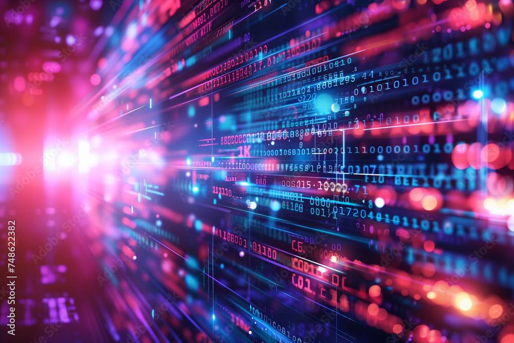 Wall mural : Vibrant digital binary code with motion blur -