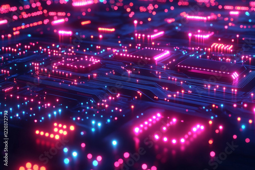 Wall mural : Vibrant digital ecosystem with glowing data nodes and circuits