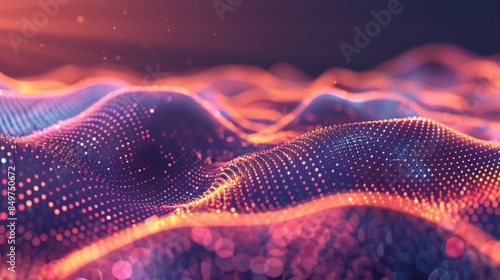 The watermark will not be included on Wall mural.: Vibrant digital landscape with waves of glowing particles, creating a futuristic wavelike pattern