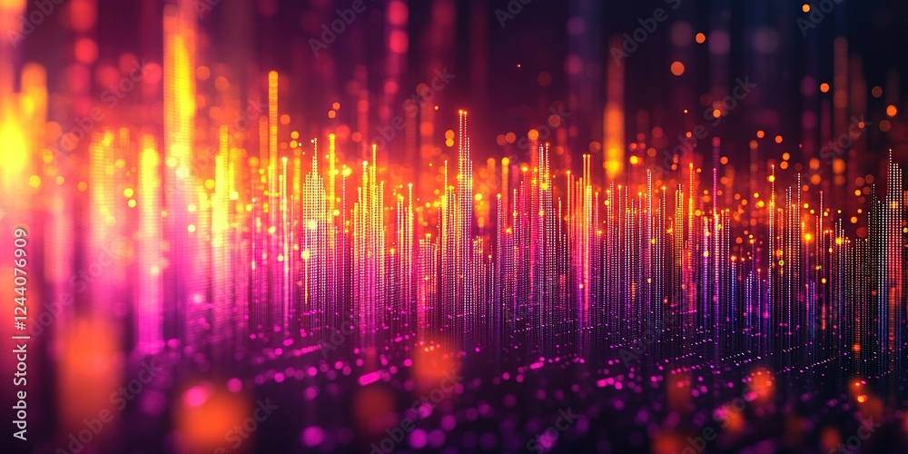 Wall mural vibrant digital wave visualization with glowing elements illustrating data progression in a colorful - Wall murals Wall mural vibrant digital wave visualization with glowing elements illustrating data progression in a colorful - Wall murals