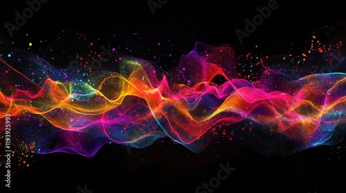 The watermark will not be included on Wall mural.: Vibrant energy flows create dynamic communication and data exchange visuals in a dark backdrop - gene