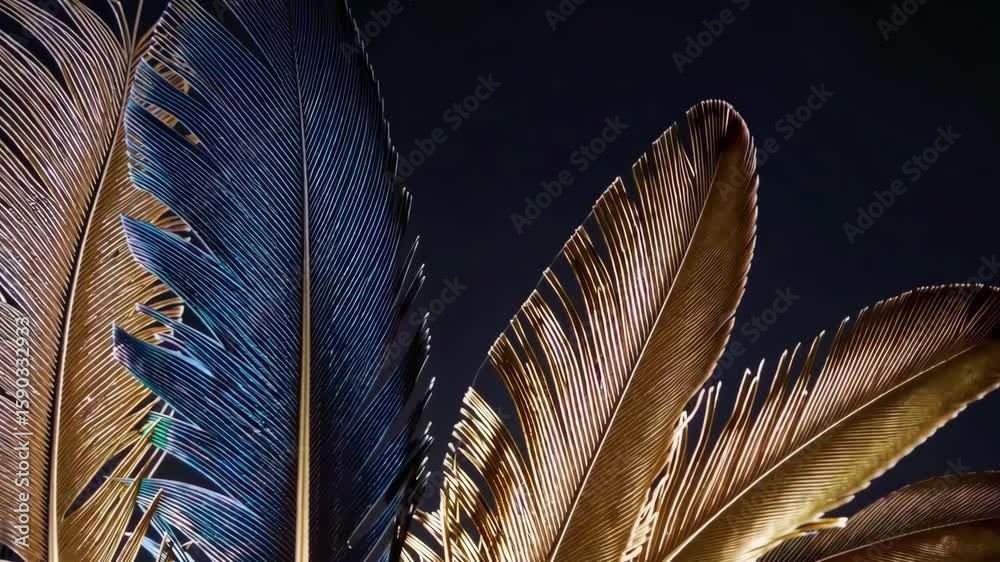 Wall mural : Vibrant feather movement: dynamic closeup display of colorful textures