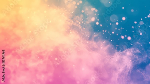 The watermark will not be included on Wall mural.: Vibrant fuzzy pink, blue, and yellow gradient background with soft blurred texture creating a dreamy