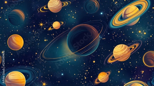 Vibrant galactic scene with planets and stars in deep spaceWall mural
