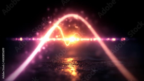 The watermark will not be included on Wall mural.: Vibrant glowing audio waveform animation pulsating on a reflective dark surface background -