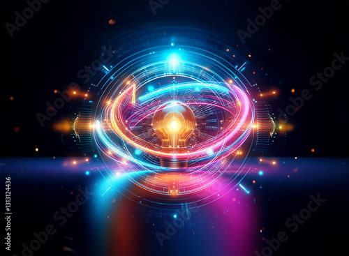 Wall mural vibrant glowing orb with swirling light trails on a dark backdrop. double exposure creates a dynamic