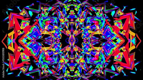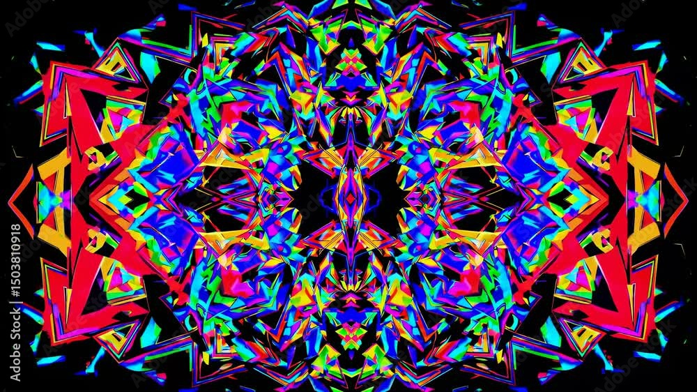 The watermark will not be included on Wall mural.: Vibrant kaleidoscopic video art with symmetrical geometric patterns - top-down angle creates a dynami