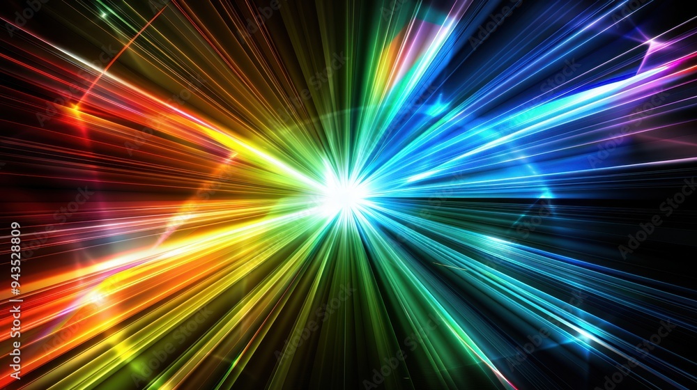 Wall mural : Vibrant light explosion in spectrum colors with dynamic motion effect