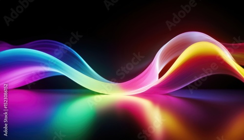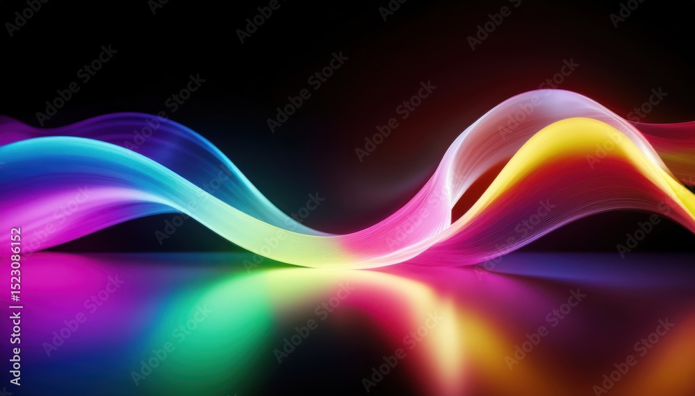The watermark will not be included on Wall mural.: Vibrant multicolor neon lightwave curve on black background with glossy reflection for modern web de