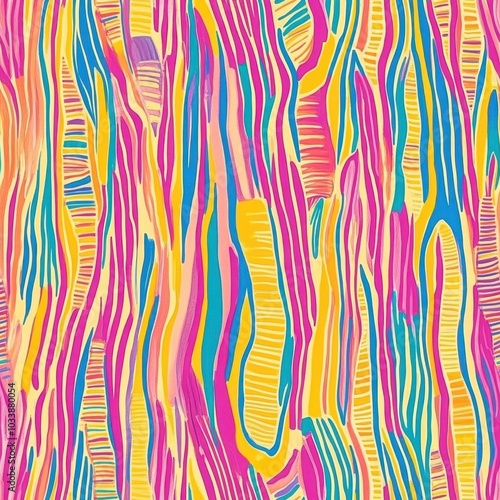 Wall mural : Vibrant multicolored abstract wavy lines pattern background