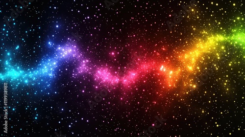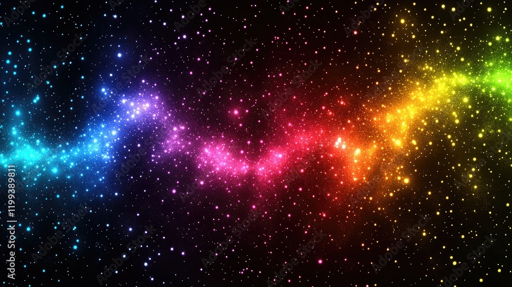 Wall mural : Vibrant multicolored stardust particles against deep black space with glowing galaxy effect and ampl