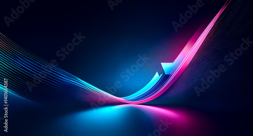 The watermark will not be included on Wall mural.: Vibrant neon blue and pink lines curve dynamically on a dark background, creating a futuristic abstr