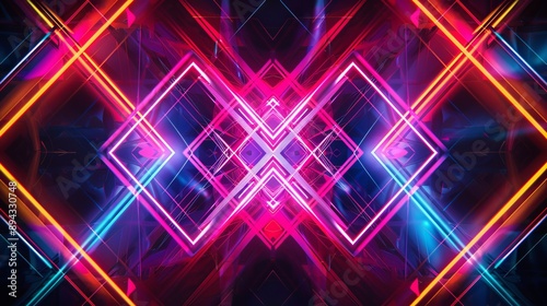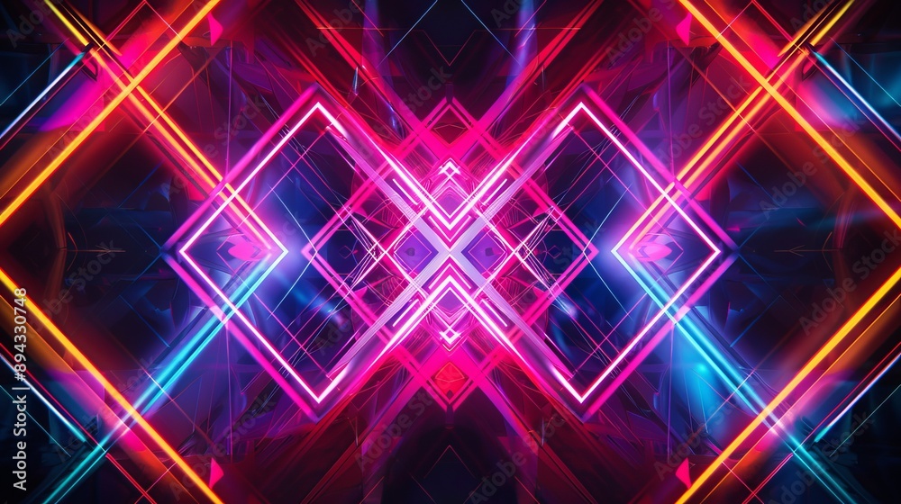 Wall mural : Vibrant neon geometric patterns with hexagonal and triangular shapes - abstract futuristic backgroun