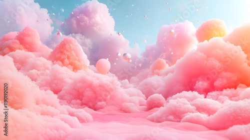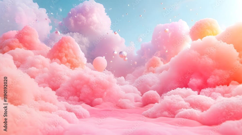 The watermark will not be included on Wall mural.: Vibrant pastel gradient composition with soft fluffy textures and playful creative fantasy elements