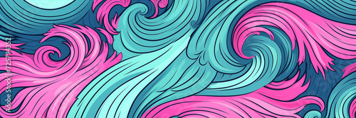 Wall mural vibrant pink and teal swirls in dynamic abstract design background banner. panoramic web header. wid