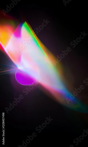 The watermark will not be included on Wall mural.: Vibrant prism light streaks across a dark background, creating a dynamic and colorful abstract image