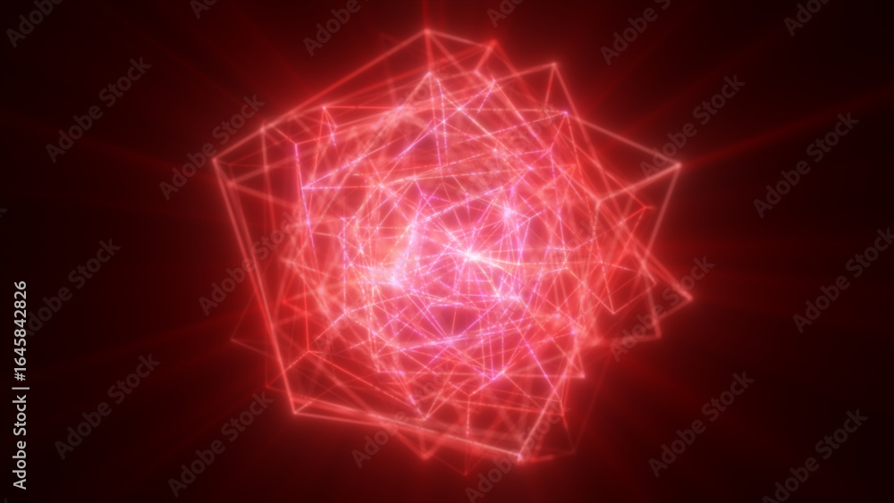 Wall mural : Vibrant red glowing digital sphere with dynamic interconnected lines and energy spark effects on a d