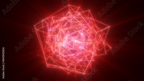Wall mural vibrant red glowing digital sphere with dynamic interconnected lines and energy spark effects on a d