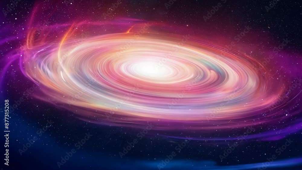 The watermark will not be included on Wall mural.: Vibrant spiral galaxy with glowing center slowly rotating in deep outer space, creating a mesmerizin