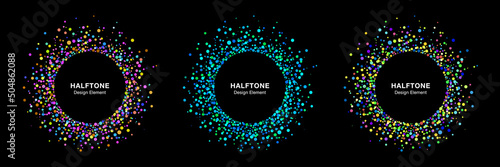 Wall mural : Vibrant splash frames - random halftone circle dots logo - colorful design element - splatter round - sp