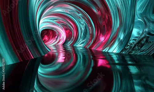 Wall mural : Vibrant teal and magenta liquid tunnel swirls in a mesmerizing abstract effect made with generative