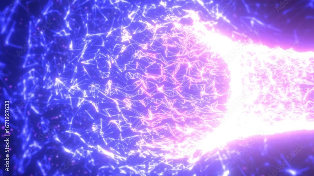 Wall mural : Vibrant violet and blue light grid forming an abstract digital network of glowing triangular connect