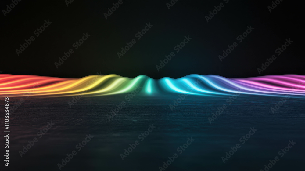 The watermark will not be included on Wall mural.: Vibrant waves of color flowing across a dark background with soft glowing effect