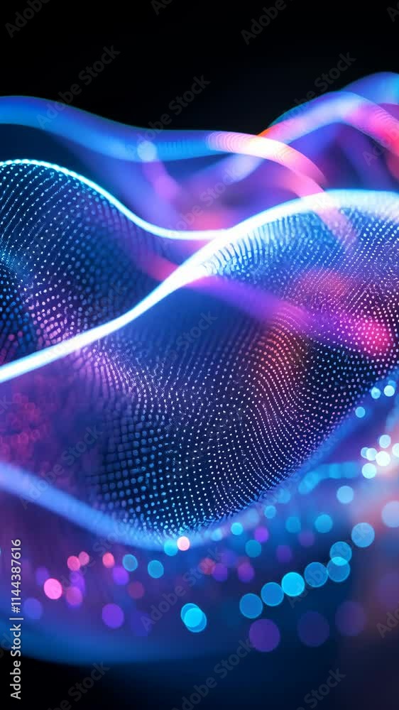 The watermark will not be included on Wall mural.: Vibrant waves of light and color create an abstract digital landscape in a futuristic setting