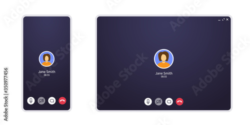Wall mural video call screen on mobile phone and web. conference chat application ui with mic and video icon an - Wall murals Wall mural video call screen on mobile phone and web. conference chat application ui with mic and video icon an - Wall murals