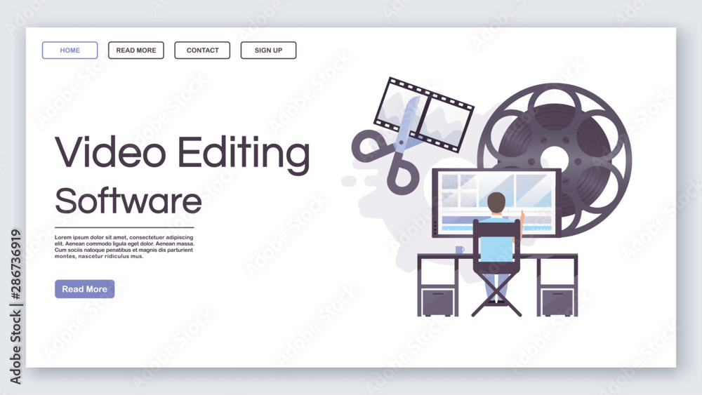 The watermark will not be included on Wall mural.: Video editing software landing page vector template - post production website interface idea with fla