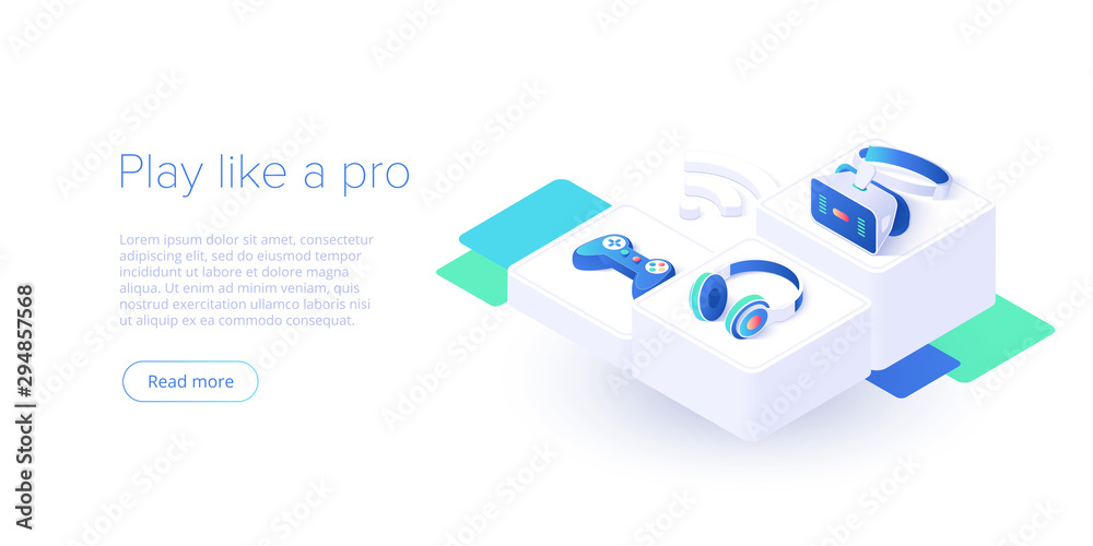 Wall mural video game controller and headphones set in isometric vector illustration. videogame console joystic - Wall murals Wall mural video game controller and headphones set in isometric vector illustration. videogame console joystic - Wall murals