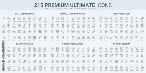 The watermark will not be included on Wall mural.: Video games, software code, cloud technology thin black line icons set vector illustration - outline