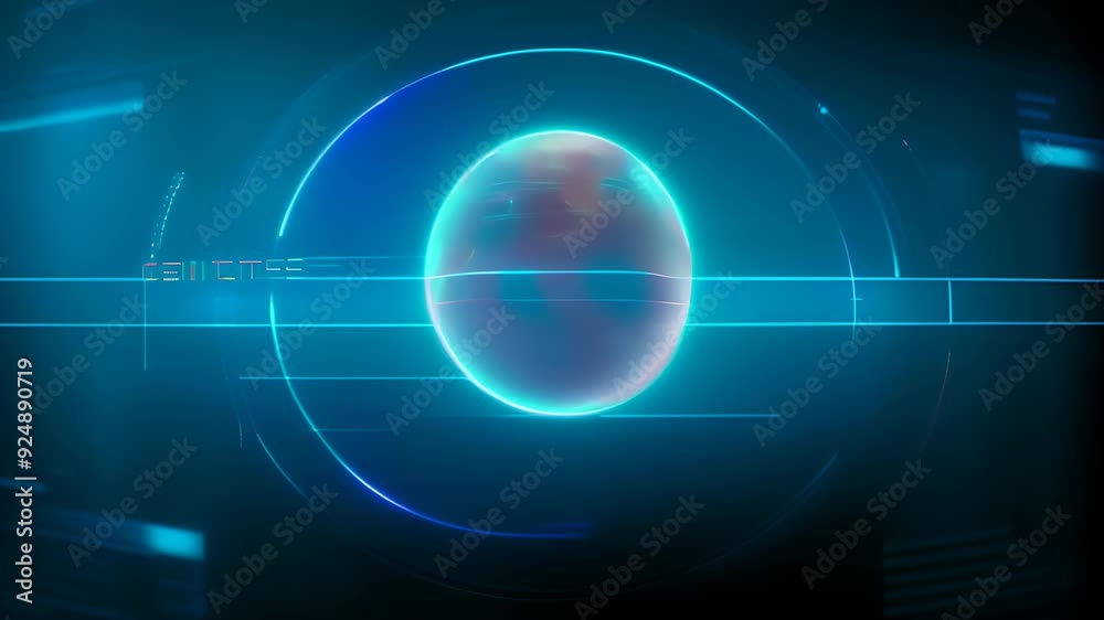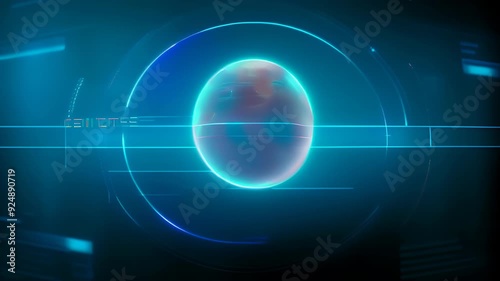 Wall mural video of glowing blue sphere with neon elements in futuristic interface, data processing and advance - Wall murals Wall mural video of glowing blue sphere with neon elements in futuristic interface, data processing and advance - Wall murals