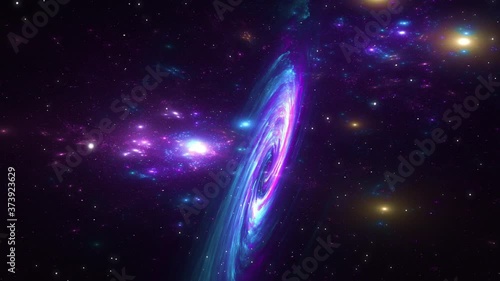 Wall mural video of universe or aerial flyby. camera moves towards a blue heavenly object or cosmos while stars