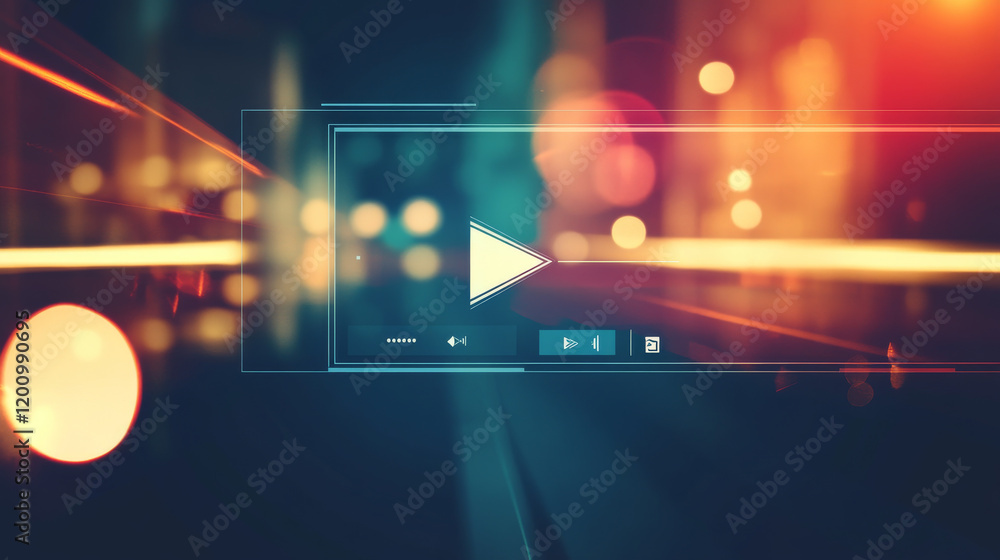 The watermark will not be included on Wall mural.: Video player transparent interface background with play buttons, vector template - digital web video