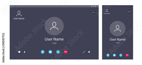 Wall mural : Videocall interface template desktop and mobile version, video chat user window mock up for online b
