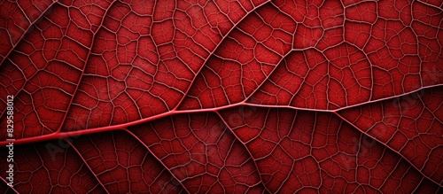 The watermark will not be included on Wall mural.: View from below showing a detailed red leaf vein with copy space image