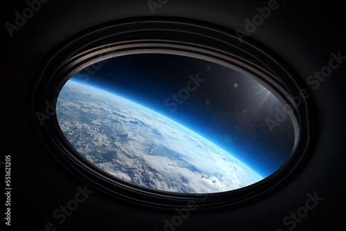 Wall mural : View from porthole of a spaceship to earth planet - this image elements furnished by nasa -