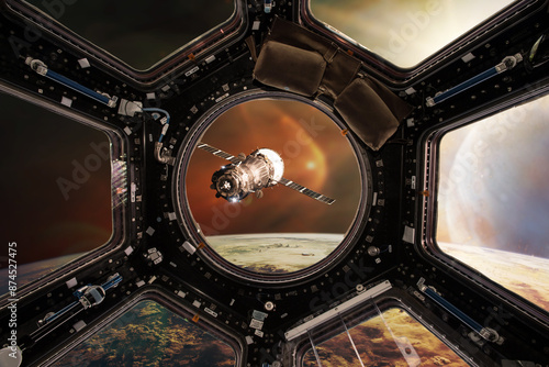 The watermark will not be included on Wall mural.: View from porthole - spacecraft launch into space - elements of this image furnished by nasa -