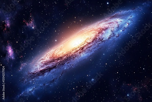 Wall mural view from space of a spiral galaxy and stars. the universe filled with stars, nebulae and galaxies