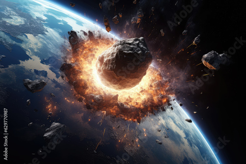 Wall mural view from space to the planet into which a huge meteorite crashes