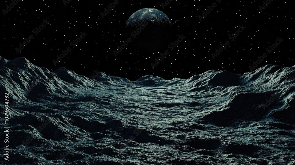Wall mural view of a bulging moon surface and a black screen in a 3d cartoon rendering - Wall murals Wall mural view of a bulging moon surface and a black screen in a 3d cartoon rendering - Wall murals