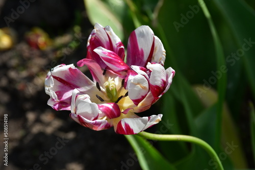 View of a fading open tulip flower in natural conditions in the garden - completion of flowering - natWall mural