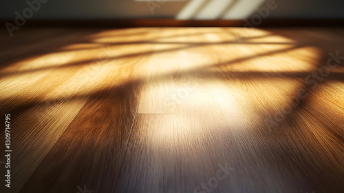 Wall mural view of a polished wooden surface with soft shadows, creating depth and warmth for healthcare compos