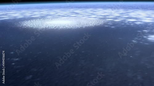 The watermark will not be included on Wall mural.: View of earth from space with sparkling lights creating a circle effect over ocean