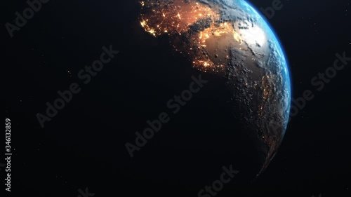 Wall mural view of forest fires and wars from space. a fiery glow is visible on the shadow side of the planet a