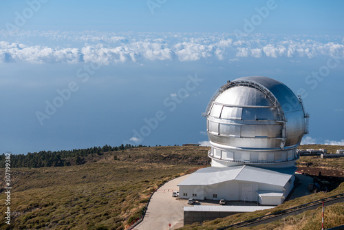 The watermark will not be included on Wall mural.: View of observatories from top of roque de los muchachos, la palma