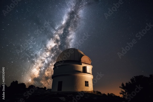 View of observatory with telescope and dome visible in the night sky, created with generative aiWall mural